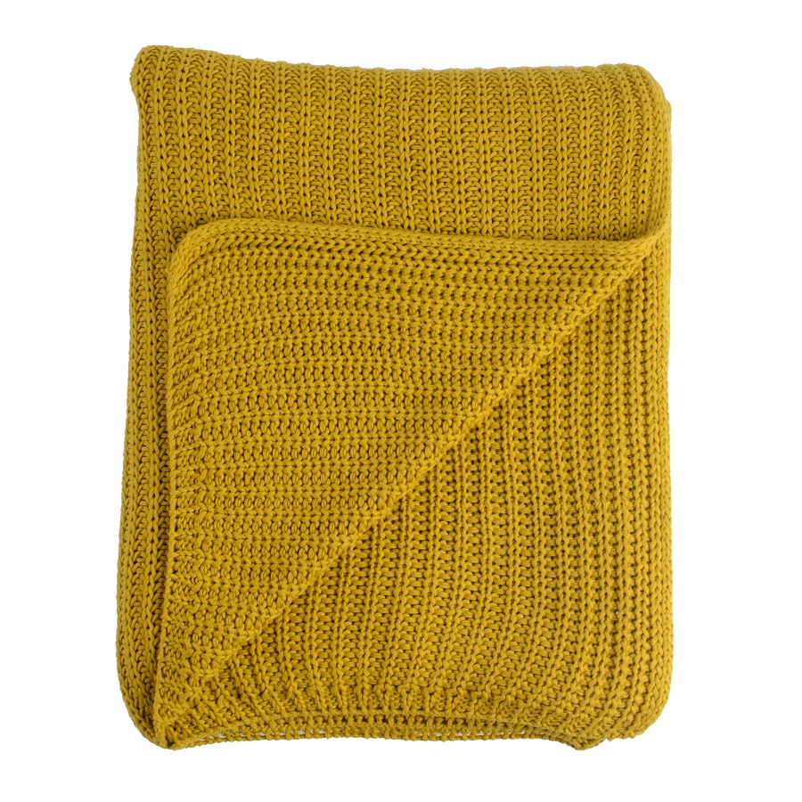 Плед вязаный горчичного цвета